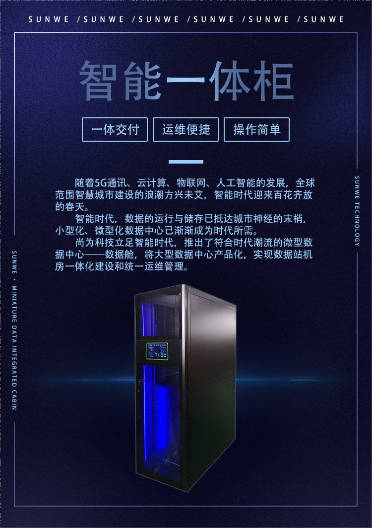 尚為智能數據艙是深度整合了UPS、供配電、制冷、機柜、布線、監控、消防等系統的一體化機柜,為IT設備提供安全可靠和高效的運行支撐,實現數據機房一站式部署和統一運維管理。產品廣泛應用于各行業。